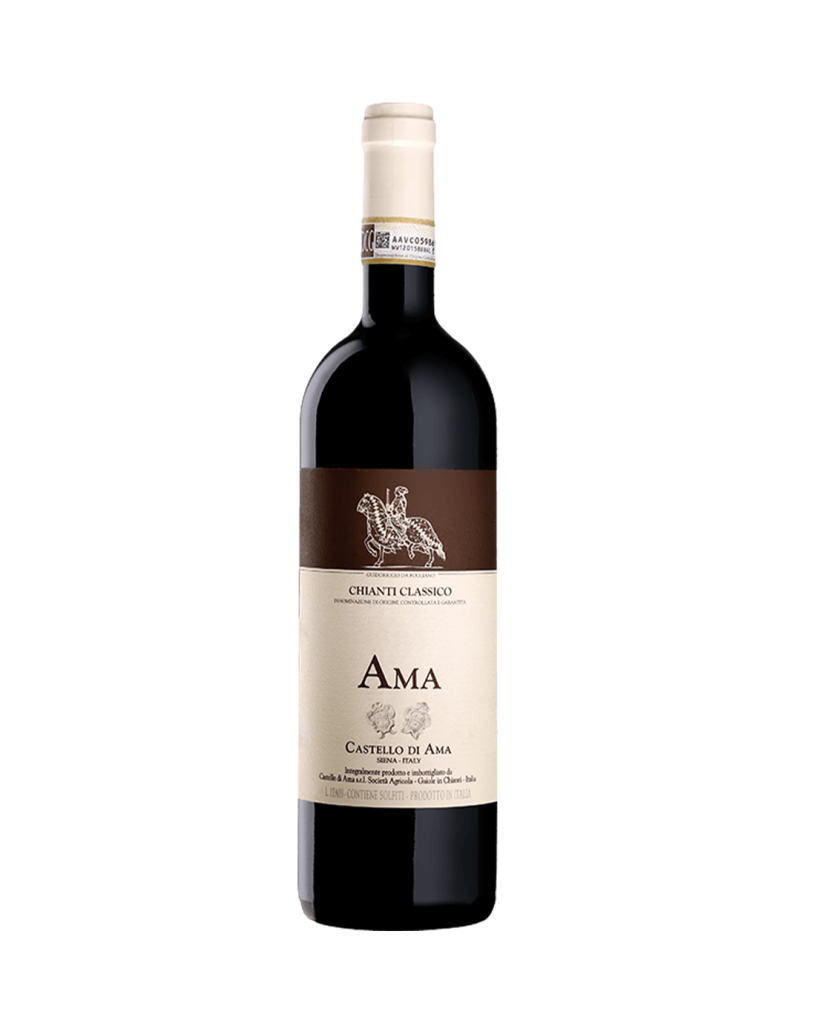 Il Chianti Classico DOCG Ama Castello di Ama è un'opera di armonia e freschezza, con un corpo di buon livello, che ha maturato in barrique per 12 mesi. Esprime un bouquet aromatico che si apre su fragranze di frutta rossa matura, sottobosco e spezie selvatiche. Al palato si rivela armonico, con una piacevole sensazione di calore e una struttura ben definita, supportata da una freschezza equilibrata.